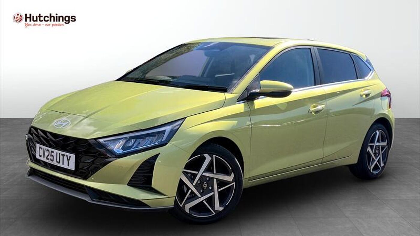 Hello and thank you for taking the time to view our Used Car Listing Ă¢â‚¬â€œ This is a brand-new 2025 (25) Hyundai i20 1.0 T-GDi Ultimate Hatchback 5dr Petrol Manual finished in the striking Lucid Lime Ă¢â‚¬â€œ a colour that perfectly complements the i20Ă¢â‚¬â„¢s sporty and dynamic design.Powered by the 1.0-litre T-GDi Petrol engine (100 PS) paired with a smooth manual gearbox the i20 delivers an agile and efficient drive fully Euro 6 compliant making it ideal for city driving and longer journeys alike.As the Ultimate model this i20 comes packed with premium features including:10.25" Touchscreen Navigation with Apple CarPlay & Android Auto.BOSE Premium Sound System for exceptional audio.Digital Supervision Cluster Ă¢â‚¬â€œ sharp and modern driver display.Heated Front Seats & Heated Steering Wheel.Smart Keyless Entry & Start Ă¢â‚¬â€œ everyday convenience.Advanced Safety Suite including Lane Keep Assist Blind Spot Monitoring & Forward Collision Avoidance.Rear Parking Camera & Sensors for effortless manoeuvring.Two-Tone Styling Details to enhance the sporty look.This i20 Ultimate blends cutting-edge technology with everyday practicality making it the perfect premium hatchback.In stock and ready to drive away today.Competitive finance options available.Part exchanges welcome.Call us today to arrange your test drive request a personalised video walkaround or secure this car online.Thank you again for viewing our listing Ă¢â‚¬â€œ Hutchings Ă¢â‚¬â€œ You Drive our passion.